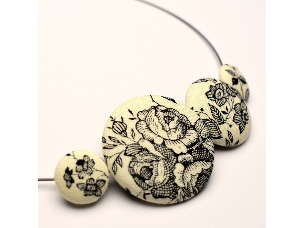 Různé druhy náhrdelníků z knoflíků.