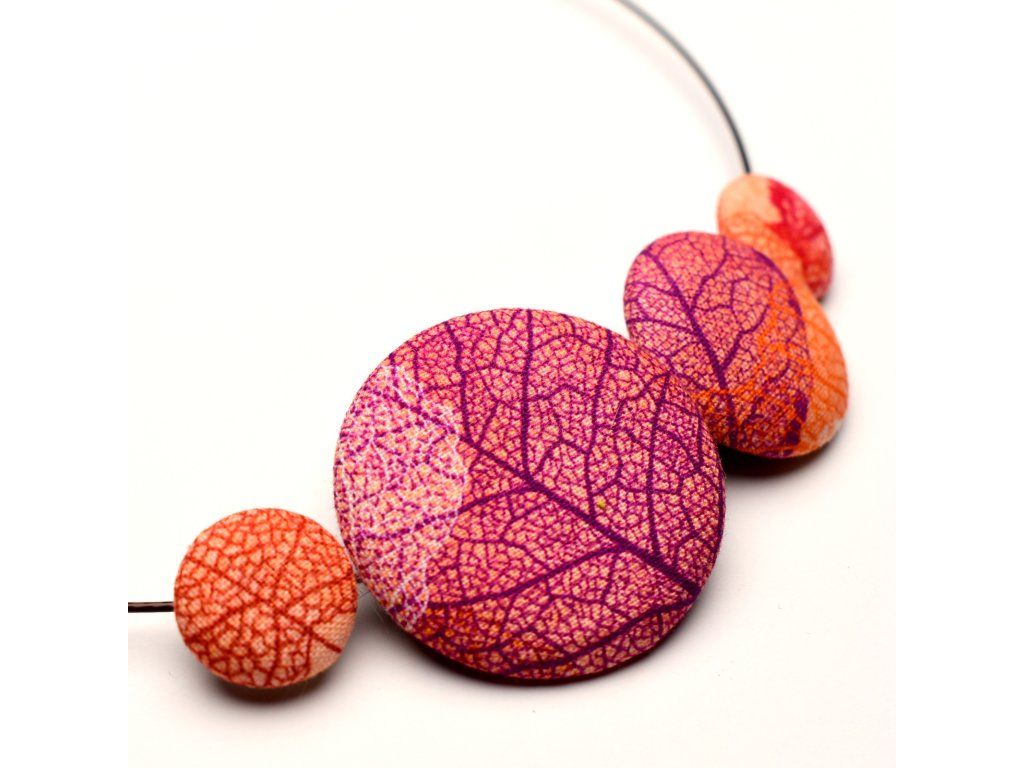 Různé druhy náhrdelníků z knoflíků.