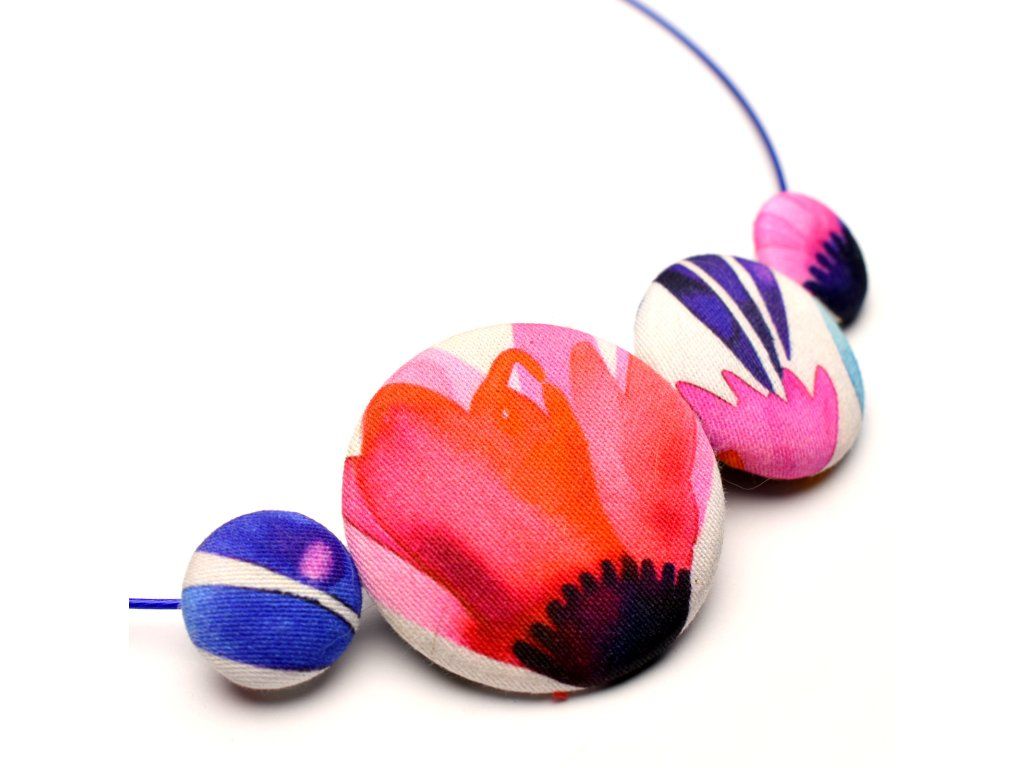 Různé druhy náhrdelníků z knoflíků.
